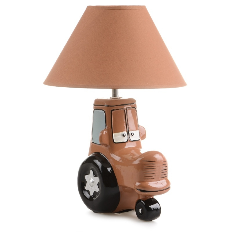 Настольная лампа для детской "Трактор" TP-023 E14 BR, выполненная из материала Керамика в цвете Коричневый. Дизайн оформления — в актуальном стиле Эконом. В качестве источника света используется лампочка с цоколем E14 и мощностью 40W.