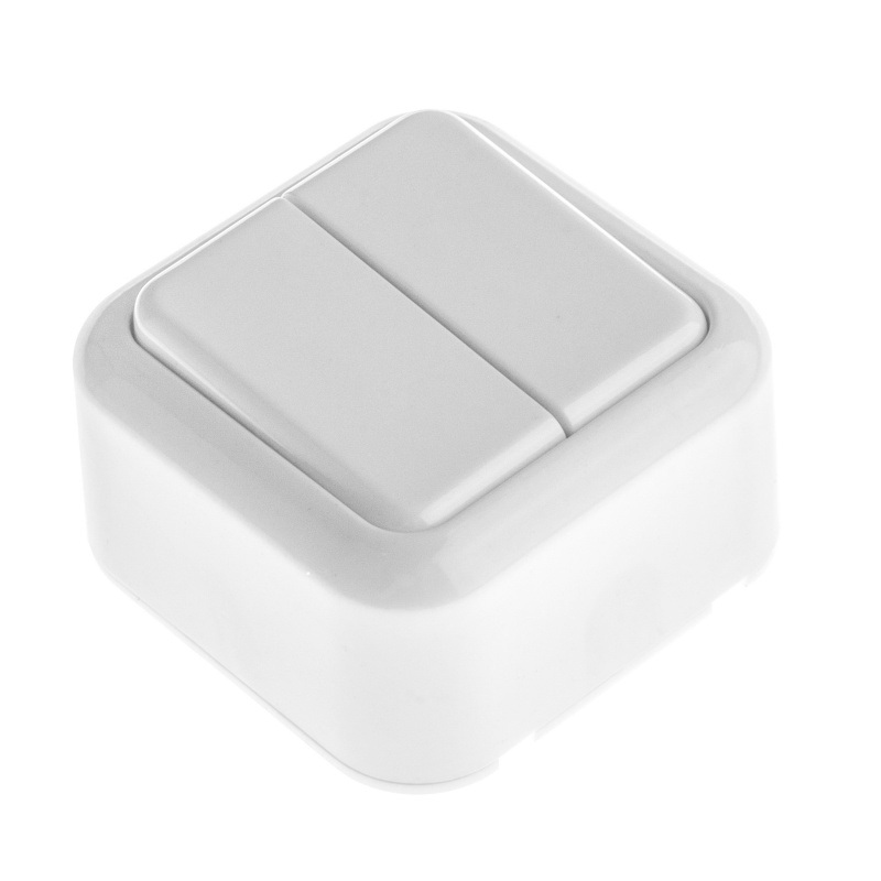 Выключатель 2-кл. RB-2V, выполненный из материала Пластик в цвете Белый. Дизайн оформления — в актуальном стиле Современный.