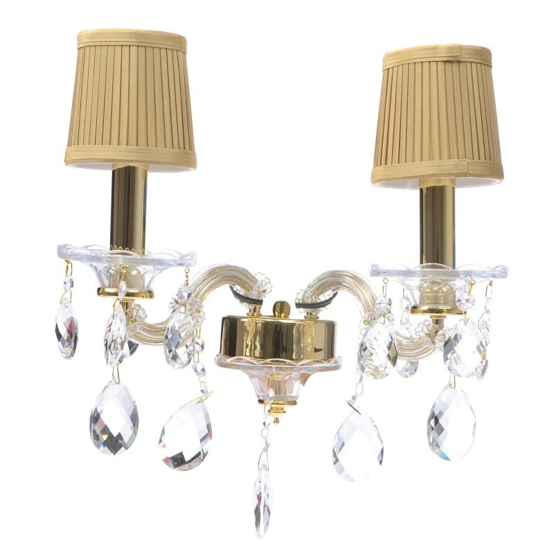 Бра настенное накладное в спальню хрустальное с абажуром классическое BCL-312W/2, выполненное из материала Металл в цвете Золотистый. Дизайн оформления — в актуальном стиле Классический. В качестве источника света используется лампочка с цоколем E14 и мощностью 40W.