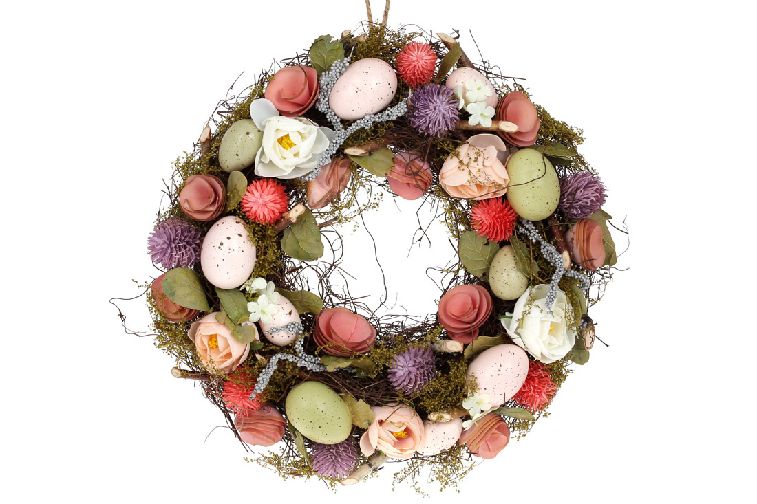 Декоративный пасхальный венок LI100253 BonaDi 34см Зелёный с розовым