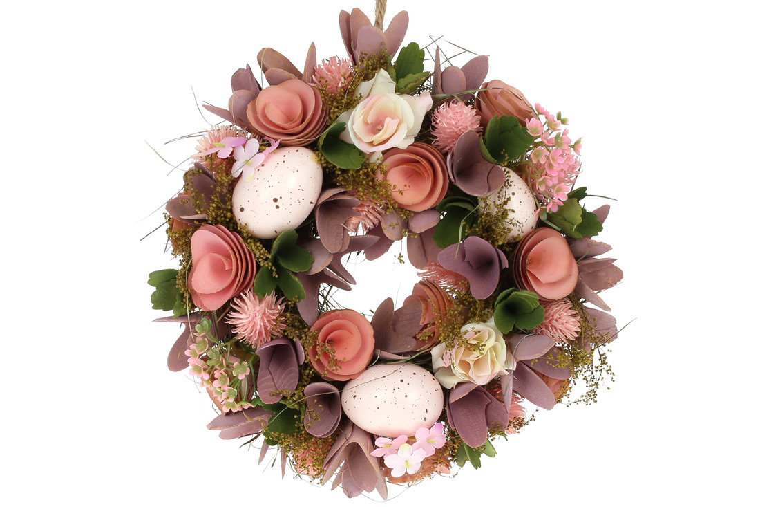 Декоративный пасхальный венок LI100257 BonaDi 24см Лилово-Персиковый