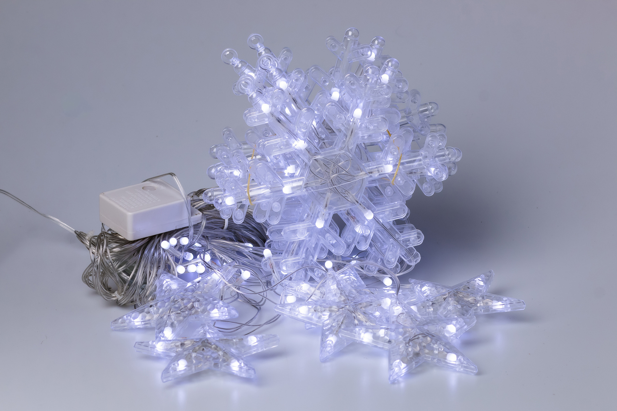 Опис Гирлянда-штора Lugi Звезды и снежинки размер 3*1м 12 фигур белый (1733064W)