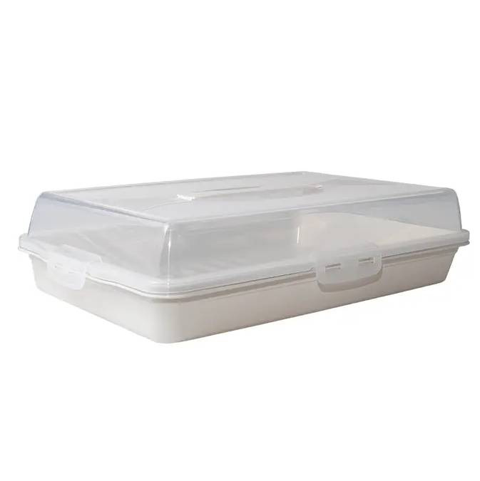 Тортівниця з кришкою прямокутна 44х30х9,5 см Алеана 169057 Какао/прозорий
