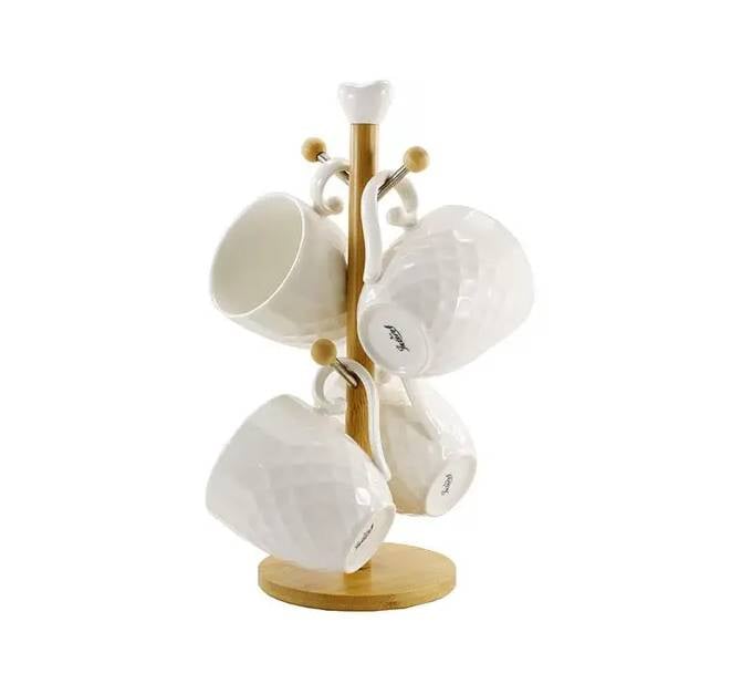 Набір чашок на дерев'яній стійці 4 шт. 300 мл Interos PJ03173