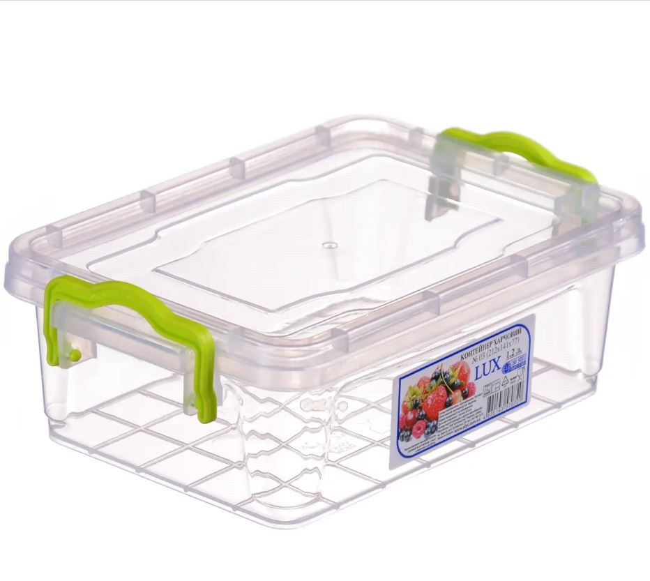 Контейнер харчовий Lux № 03 (1.2 л) з ручками, що щільно утримують кришку, завдяки чому вміст не протікає. За рахунок стійкості та заглиблення у кришці можна ставити контейнер один на інший і максимально оптимізувати простір у шафах, на полицях, у холодильнику. У контейнерах Lux № 03 можна зберігати та переносити: фрукти, овочі, зелень, сипучі, готові продуті (бутерброди, салати, другі страви), побутові дрібниці. Також використовується для заморожування продуктів без втрати корисних мікроелементів. Завдяки екологічності сировини не виділяє шкідливі елементи, відповідає європейським стандартам якості ISO 9001. Взаємодіє з харчовими продуктами, не змінюючи їх смакові якості і не впливаючи на аромат.