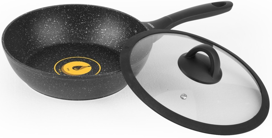 Сковорода с крышкой Zira от Ringel – это отличный вариант как для приготовления блюд из соусов, самих соусов и тушения, благодаря высоким бортикам, так и прекрасной посуде для разогрева. Изготовленные из высококачественного кованого алюминия, данные сковороды являются крепкой посудой с быстрым и равномерным нагреванием. Дно сковородок этой серии имеет дополнительное утолщение до 3,2 мм.