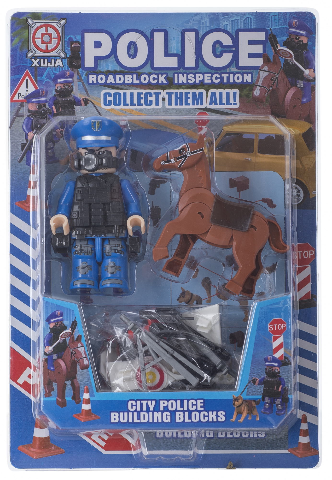Іграшковий набір "Police" ТМ SPACEBABY включає: фігурку-конструктор та аксесуари, в асортименті. У комплект входить: фігурка поліцейського заввишки 9 см, його вірний друг, зброя, дорожні знаки та аксесуари. Поліцейський і собака (або кінь, залежно від набору) мають рухливі частини тіла, до рук поліцейського можна вкласти пістолет і повідець для тварини. Дорожніми знаками можна облаштувати територію, створивши свою гру. На вибір представлені 3 іграшкові набори. Матеріал: АБС-пластик. Іграшка підійде дітям віком від 3 років. Розмір іграшки 9 х 5 х 3 см. Упаковка - блістер 17 х 25 х 4 см.