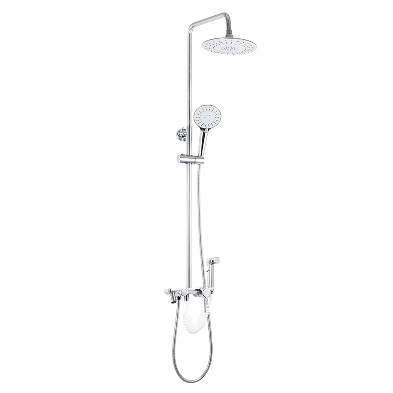 Комплектація | змішувач, лійка гігієнічного душу, лійка ручного душу, стійка, шланг, лійка верхнього душу |
