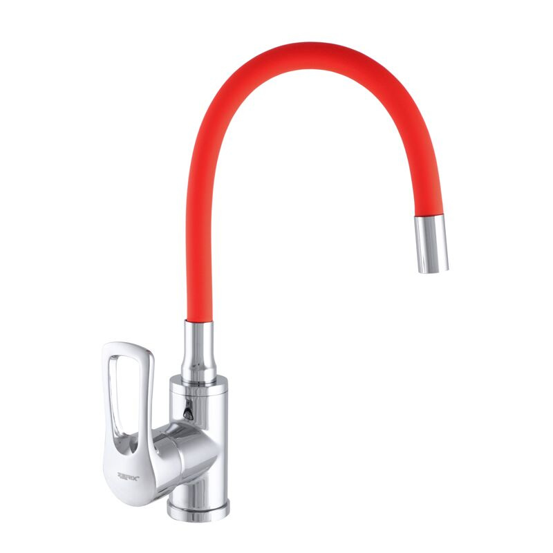 Опис Змішувач для кухні Zerix SAR 181 з червоним силіконовим виливом (ZX2672)