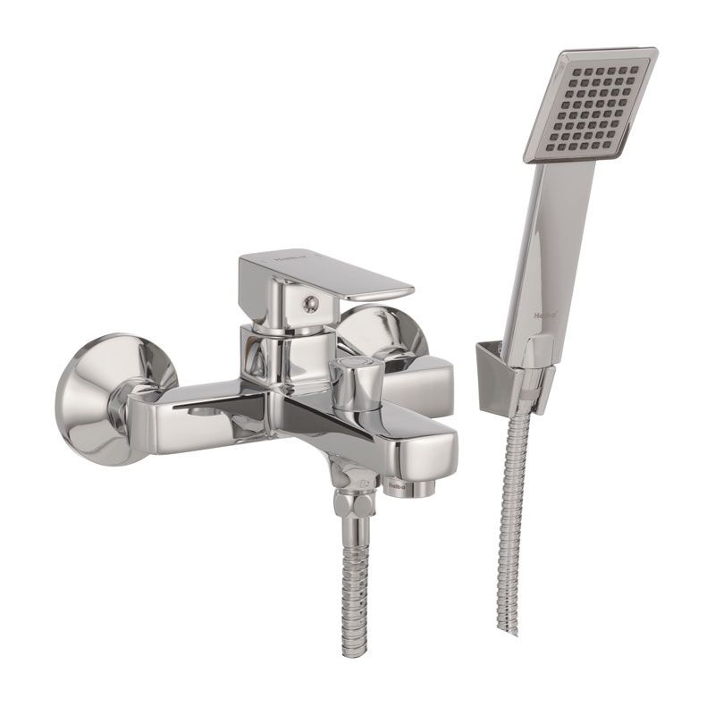 Литий змішувач для ванни Haiba Kubus 009 Euro має замінний запірний елемент - картридж з керамічними пластинами діаметром 35 мм. Встановлюється на труби холодної та гарячої води, вмонтовані у стіну. Закріплюється за допомогою ексцентриків, які йдуть у комплекті разом із гумовими прокладками, декоративними чашками, шлангом, лійкою та кронштейном.