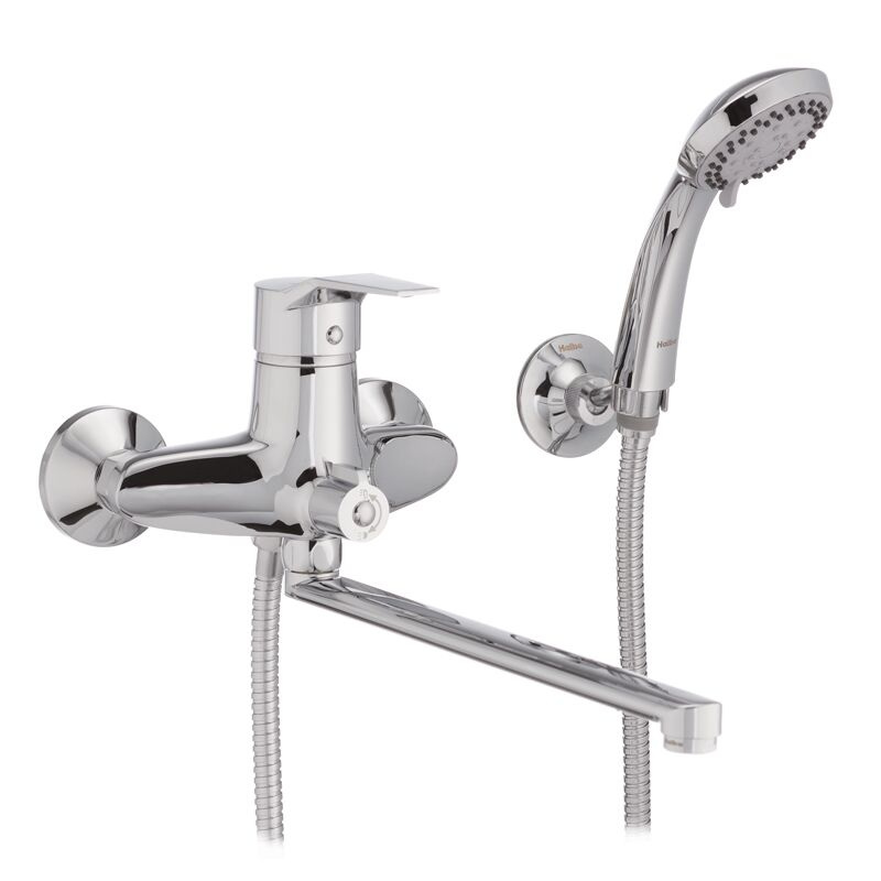 Змішувач для ванної з поворотним виливом HAIBA ZEON 006 EURO має замінний запірний елемент - картридж з керамічними пластинами діаметром 40 мм. Встановлюється на труби холодної та гарячої води, вмонтовані у стіну. Закріплюється за допомогою ексцентриків, які йдуть у комплекті разом із гумовими прокладками, декоративними чашками, шлангом, лійкою та кронштейном.