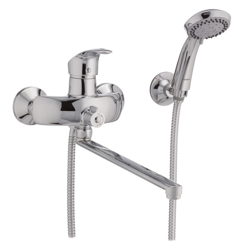 Змішувач для ванни з поворотним виливом Haiba Mars 006 Euro має замінний запірний елемент - картридж з керамічними пластинами діаметром 40 мм. Встановлюється на труби холодної та гарячої води, вмонтовані у стіну. Закріплюється за допомогою ексцентриків, які йдуть у комплекті разом із гумовими прокладками, декоративними чашками, шлангом, лійкою та кронштейном.