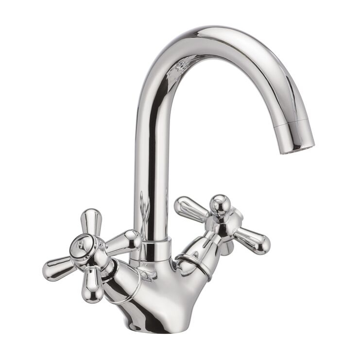 Дворучковий змішувач для умивальника Haiba DOMINOX 274 (HB0088) монтується гайкою на умивальник на один отвір. Корпус виконаний з сантехнічної латуні категорії А, покритий хромом. Вилив литий довжиною 127 мм. Як запірний елемент використовуються кран букси з керамічними пластинами (180°) - 1/2. Висота змішувача – 209 мм. Підключається до трубопроводу двома гнучкими підводками, які йдуть в комплекті разом з елементом кріплення, аератором і гумовими прокладками. Поставляється у фірмовій коробці Haiba.