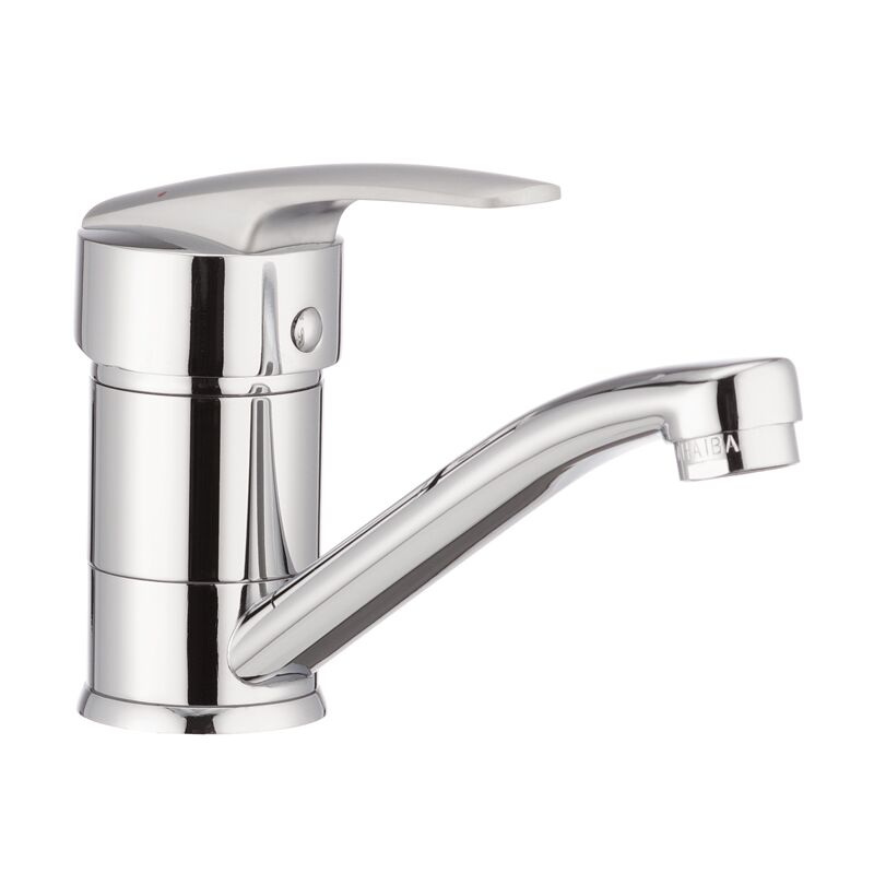 Одноручковий змішувач для умивальника Haiba AGAT 004 (вилив 15 см) (HB0005) монтується шпилькою на умивальник на один отвір. Корпус виконаний з сантехнічної латуні категорії А, покритий хромом. Вилив поворотний довжиною 15 см. Запірний елемент - замінний керамічний картридж 40 мм. виробництва компанії Sedal. Висота змішувача – 123 мм. Підключається до трубопроводу двома гнучкими підводками, які йдуть в комплекті разом з елементом кріплення, аератором і гумовими прокладками. Поставляється у фірмовій коробці Haiba.