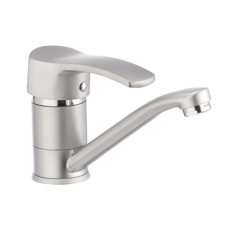 Одноручковий змішувач для умивальника Haiba FOCUS 004 матовий (вилив 15 см) (HB0116) монтується шпилькою на умивальник на один отвір. Корпус виконаний з сантехнічної латуні категорії А, матовим хромом. Вилив поворотний довжиною 15 см. Запірний елемент - замінний керамічний картридж 40 мм. виробництва компанії Sedal. Висота змішувача – 116 мм. Підключається до трубопроводу двома гнучкими підводками, які йдуть в комплекті разом з елементом кріплення, аератором і гумовими прокладками. Поставляється у фірмовій коробці Haiba.