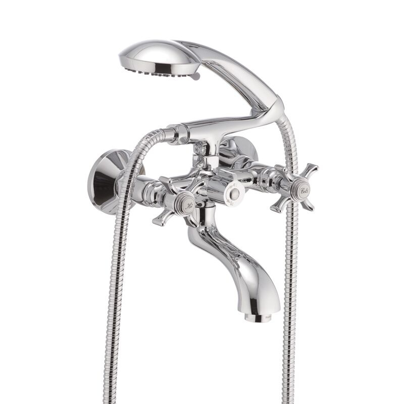 Змішувач для ванної кімнати з поворотним виливом Haiba Zeus 142 Euro має замінний запірний елемент - повнооборотний кран буксу з гумовими прокладками розміром 1/2 дюйма. Встановлюється на труби холодної та гарячої води, вмонтовані у стіну. Закріплюється за допомогою ексцентриків, які йдуть у комплекті разом із гумовими прокладками, декоративними чашками, шлангом, лійкою та кронштейном.