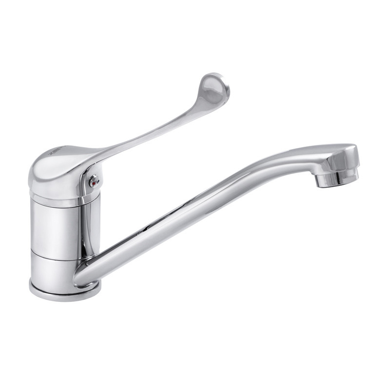 Одноручковий змішувач для кухні ZERIX PED-A 127 (ZX2940) монтується під один отвір (мийка, стільниця, підвіконня) на гайку. Виготовлений з латуні (сплаву цинку, міді та ін. металів), що володіє високою міцністю, зносостійкістю і є одним з кращих матеріалів для змішувачів. Покриття - дзеркальний хром. Довжина поворотного виливу - 21 см. Запірний елемент - керамічний картридж діаметром 40 мм. Підключається до трубопроводу двома гнучкими підводками, які йдуть у комплекті разом із кріпильним елементом, аератором та гумовими прокладками. Поставляється у фірмовій коробці Zerix.