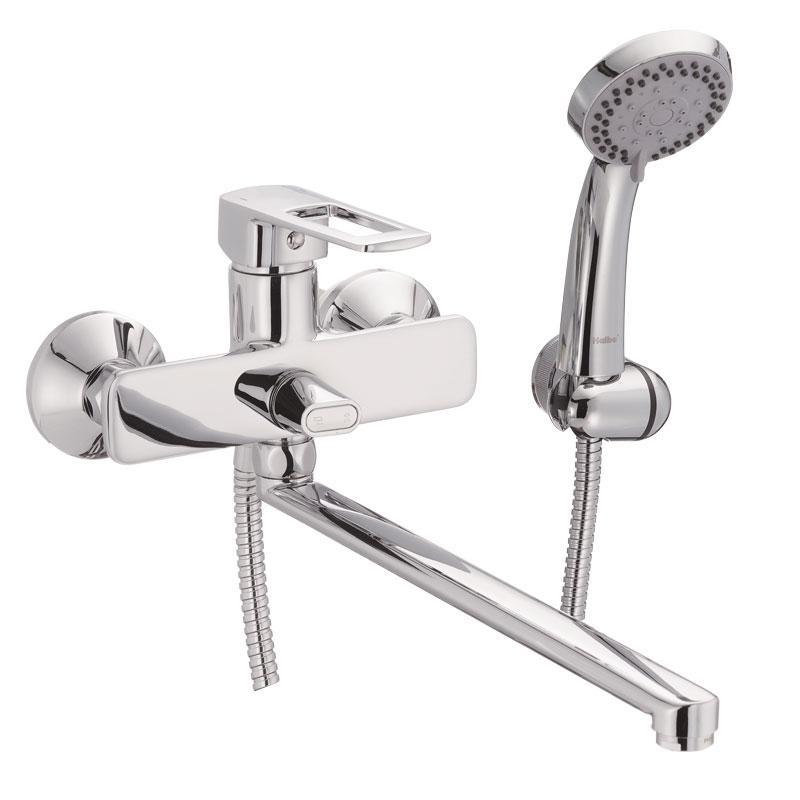 Поворотний змішувач для ванної HAIBA ENIO 006 має замінний запірний елемент - картридж з керамічними пластинами. Встановлюється на труби холодної та гарячої води, вмонтовані у стіну. Закріплюється за допомогою ексцентриків, які йдуть у комплекті разом з гумовими прокладками, декоративними чашками, шлангом, лійкою та кронштейном.