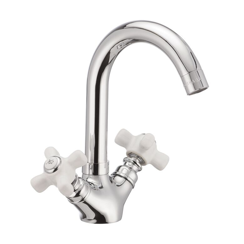 Дворучковий змішувач для умивальника Haiba ODYSSEY 274 (HB0314) монтується гайкою на умивальник на один отвір. Корпус виконаний з сантехнічної латуні категорії А, покритий хромом. Особливість моделі - білі керамічні ручки. Вилив литий довжиною 127 мм. Як запірний елемент використовуються кран букси з керамічними пластинами (180°) - 1/2. Висота змішувача – 209 мм. Підключається до трубопроводу двома гнучкими підводками, які йдуть у комплекті разом із кріпильним елементом, аератором та гумовими прокладками. Поставляється у фірмовій коробці Haiba.