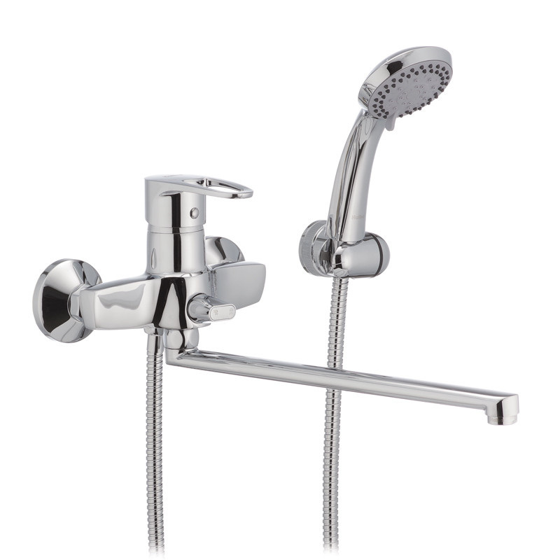 Змішувач для ванної з поворотним виливом Haiba Xide 006 Euro має замінний запірний елемент - картридж з керамічними пластинами діаметром 40 мм. Встановлюється на труби холодної та гарячої води, вмонтовані у стіну. Закріплюється за допомогою ексцентриків, які йдуть у комплекті разом із гумовими прокладками, декоративними чашками, шлангом, лійкою та кронштейном.