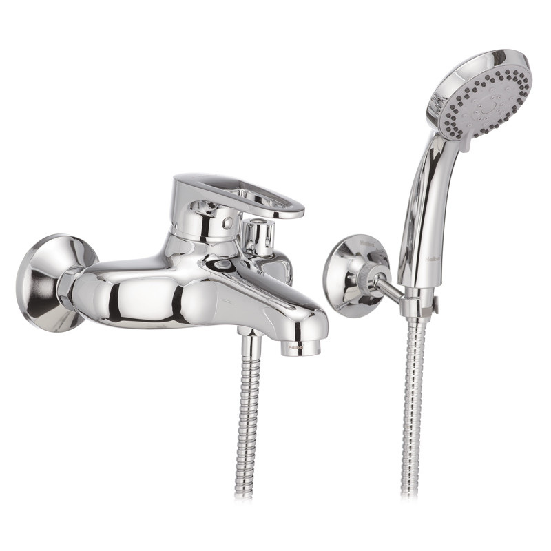 Литий змішувач для ванної Haiba Opus 009 має замінний запірний елемент - картридж з керамічними пластинами діаметром 40 мм. Встановлюється на труби холодної та гарячої води, вмонтовані у стіну. Закріплюється за допомогою ексцентриків, які йдуть у комплекті разом із гумовими прокладками, декоративними чашками, шлангом, лійкою та кронштейном.