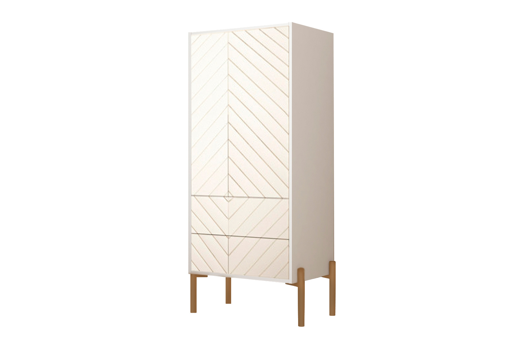 Комод - пенал GlacierGrove має сучасний дизайн з лаконічними геометричними лініями. Фасад прикрашено стильним ромбовидним візерунком, що додає текстури та акцентує його сучасний стиль. Високі металеві ніжки дозволяють зручно використовувати робот пилосос для прибирання.