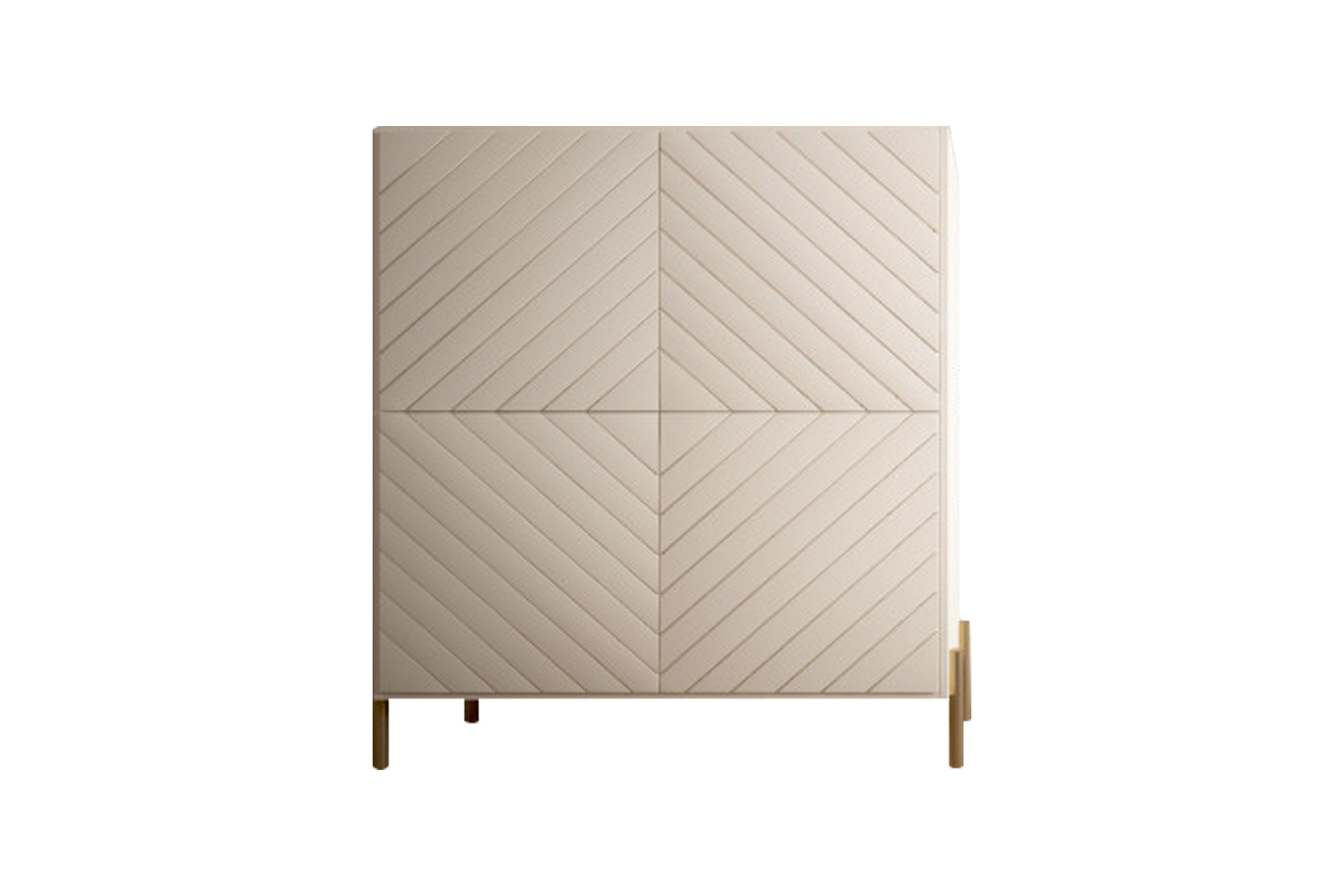 Комод - пенал GlacierGrove має сучасний дизайн з лаконічними геометричними лініями. Фасад прикрашено стильним ромбовидним візерунком, що додає текстури та акцентує його сучасний стиль. Високі металеві ніжки дозволяють зручно використовувати робот пилосос для прибирання.