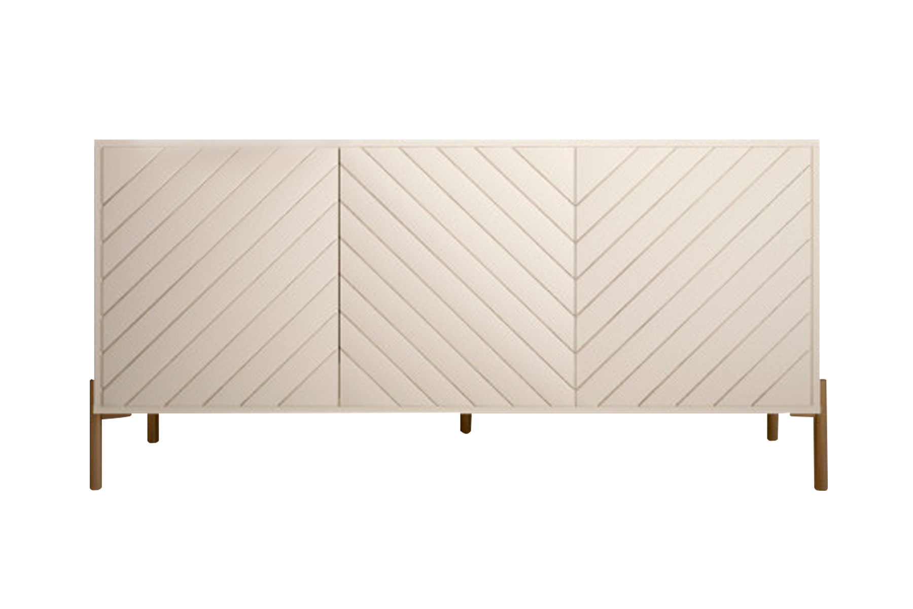 Тумба для TV GlacierGrove-4 має сучасний дизайн з лаконічними геометричними лініями. Фасад прикрашено стильним візерунком «ялинка», що додає текстури та акцентує сучасний стиль виробу. Високі металеві ніжки дозволяють зручно використовувати робот пилосос для прибирання.