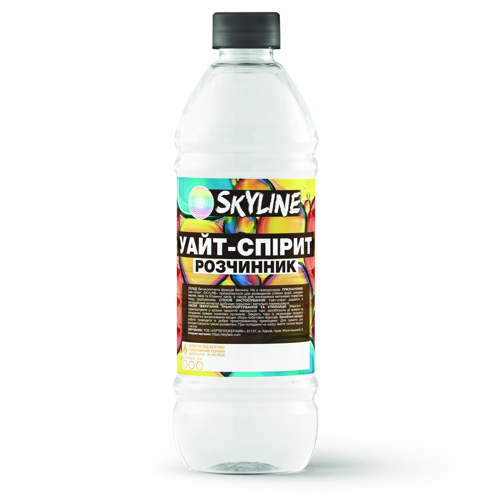 Уайт-спирит Скайлайн – эффективный растворитель, который позволяет сократить расход лакокрасочных материалов, применяется для разбавления алкидных, масляных красок, грунтовок и пр., а также для очистки инструмента. Очень прост в применении, помогает экономно расходовать лакокрасочные материалы. При этом добавление растворителя никак не влияет на качество покрытия. Также применяют для разведения грунтовок, шпаклевок, олиф, битумных и сланцевых автомобильных мастик, для удаления жировых и битумных пятен с разных типов поверхностей. Является универсальным растворителем, широко применяемым на производстве, химической промышленности, строительстве и при проведении ремонтных работ. Его столь широкое применение обусловлено в первую очередь такими качествами, как небольшая токсичность и очень низкая пожароопасность. В бытовых целях данный состав применяется при очистке разнообразных поверхностей, а также используется как универсальный растворитель при работе с лаками, эмалями, красками, грунтовками, шпатлевкой и многими другими строительными материалами. СОСТАВ: Высококипящая фракция бензина. Не является прекурсором.