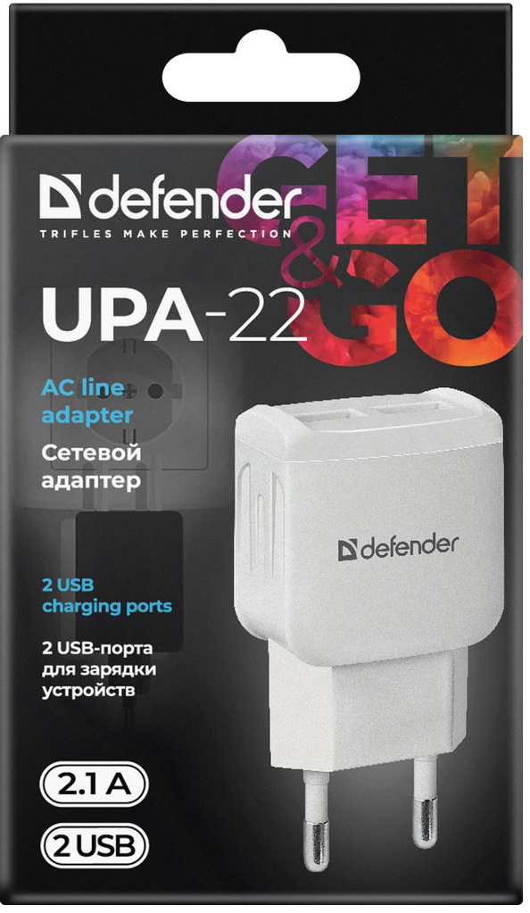 Опис Зарядний пристрій Defender UPA-22 White, 2xUSB, 2.1A (83580) (6505068)