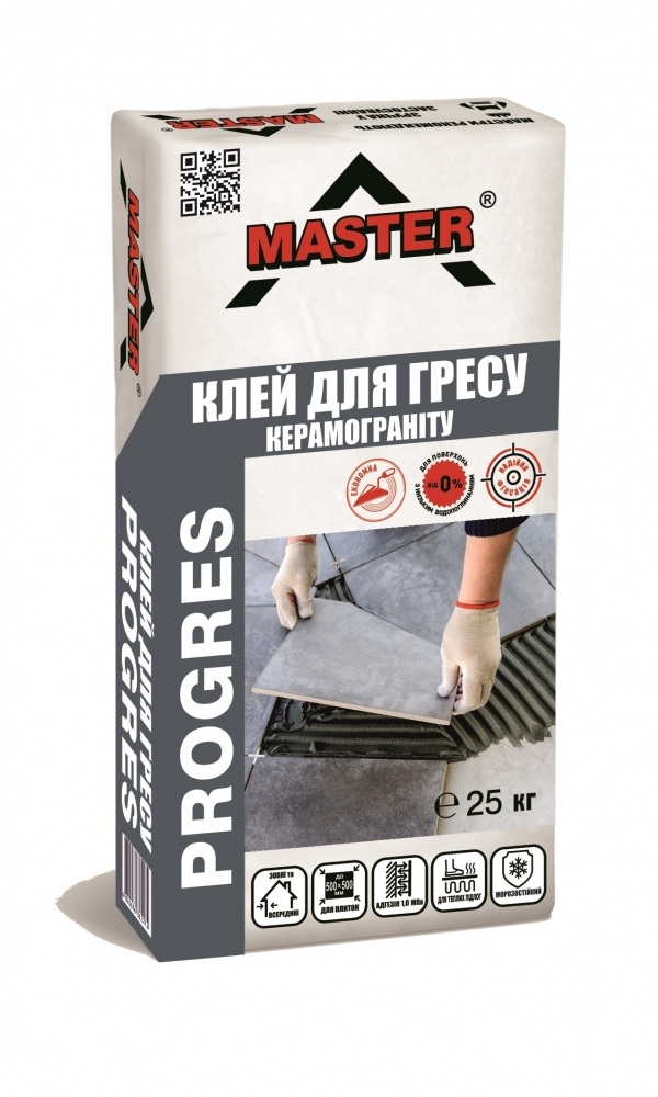 Характеристики товару Клей для керамогранита MASTER PROGRES 25 кг