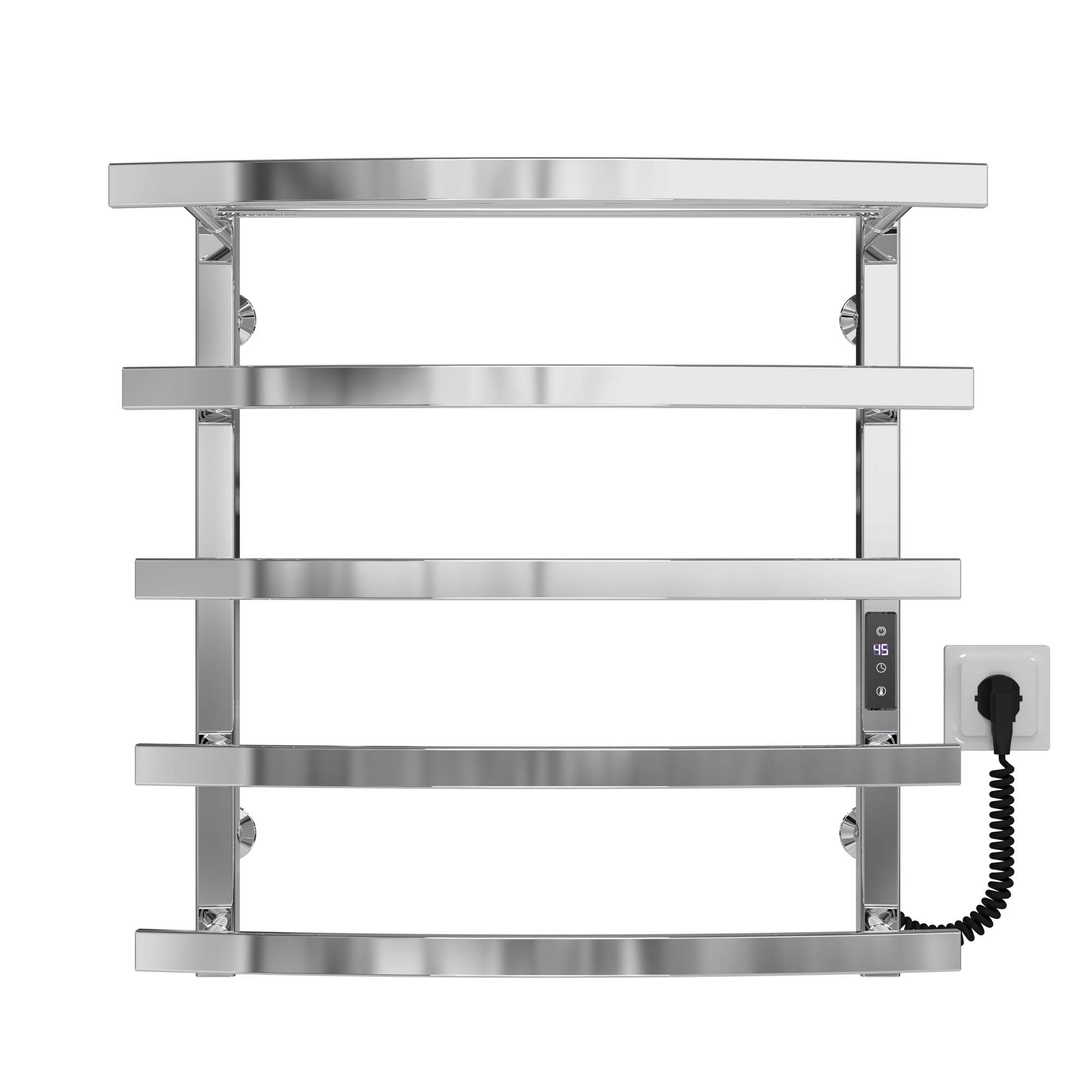 Переваги рушникосушки: Виготовлена з нержавіючої сталі марки AISI 201 Безпечна температура поверхні Високий ступінь ізоляції виробу Низьке споживання електроенергії Можливість встановити приховане підключення Електрична рушникосушка призначена для сушки рушників і інших текстильних виробів в домашніх умовах. Вона виготовлена з полірованої нержавіючої сталі, яка забезпечує максимально ефективну тепловіддачу. Дана модель буде чудово виглядати в інтер’єрі сучасної ванної кімнати завдяки чітким лініям прямих перемичок, з додатковим місцем для рушників у вигляді полиці. У корпус рушникосушки вмонтований електричний нагрівальний елемент. Для зручності експлуатації на стійці рушникосушки вмонтовано термоконтроллер.