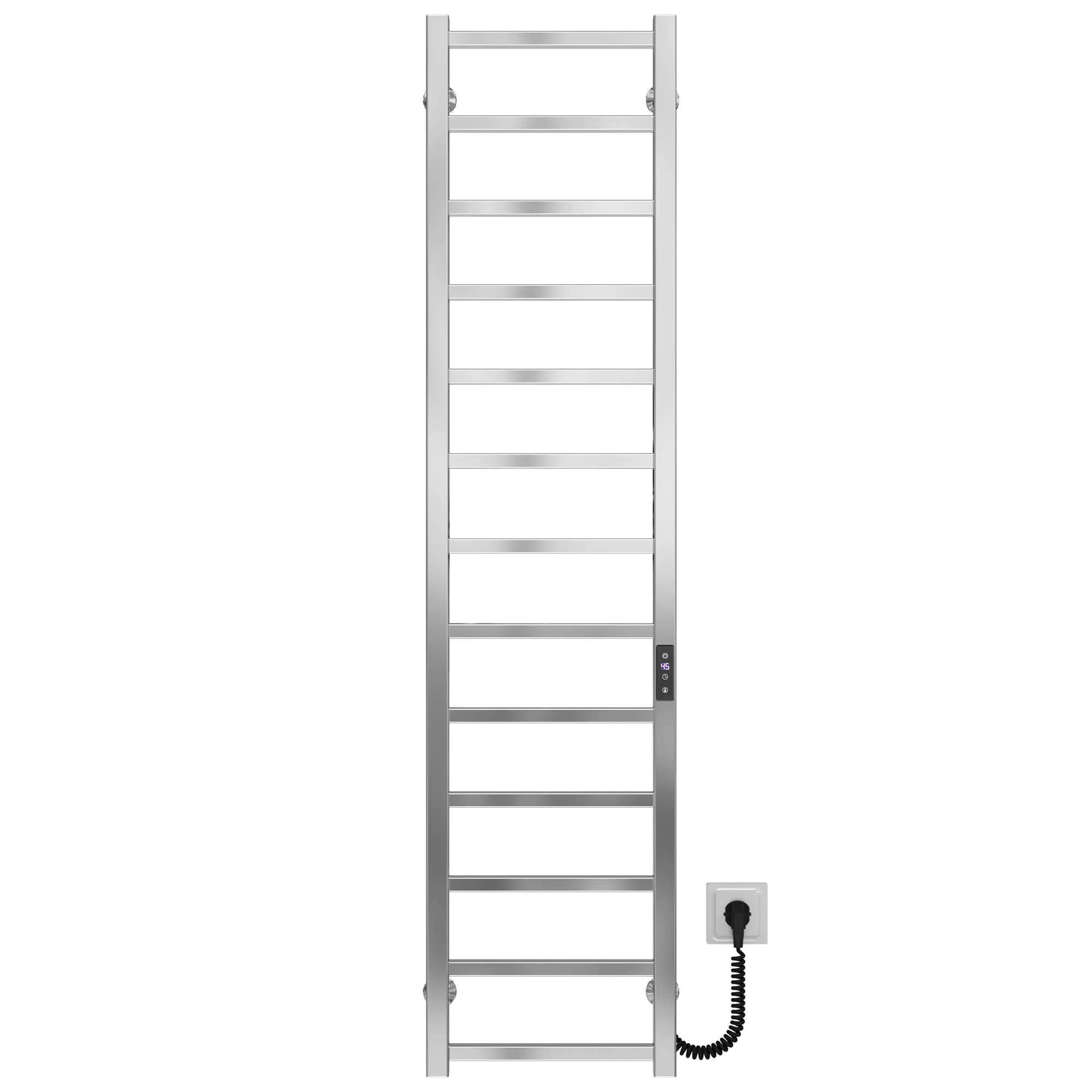 Переваги рушникосушки: Виготовлена з нержавіючої сталі марки AISI 201 Безпечна температура поверхні Високий ступінь ізоляції виробу Низьке споживання електроенергії Можливість встановити приховане підключення Електрична рушникосушка призначена для сушки рушників і інших текстильних виробів в домашніх умовах. Вона виготовлена з полірованої нержавіючої сталі, яка забезпечує максимально ефективну тепловіддачу. Дана модель буде чудово виглядати в інтер’єрі сучасної ванної кімнати завдяки чітким лініям прямих перемичок, з додатковим місцем для рушників у вигляді полиці. У корпус рушникосушки вмонтований електричний нагрівальний елемент. Для зручності експлуатації на стійці рушникосушки вмонтовано термоконтроллер.