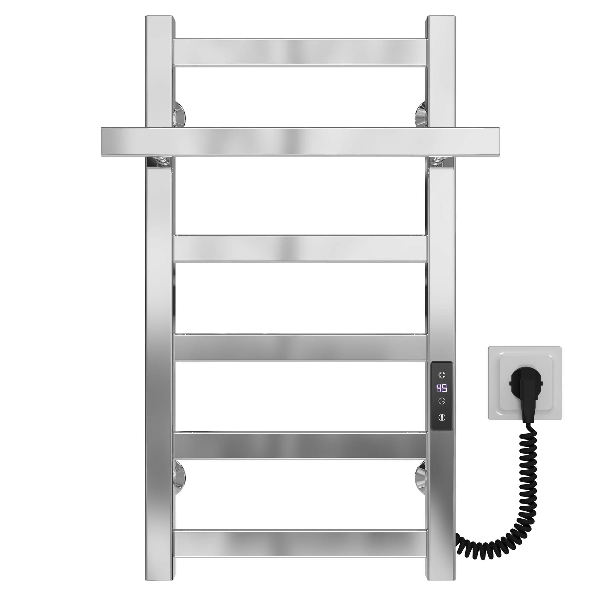 Переваги рушникосушки: Виготовлена з нержавіючої сталі марки AISI 201 Безпечна температура поверхні Високий ступінь ізоляції виробу Низьке споживання електроенергії Можливість встановити приховане підключення Електрична рушникосушка призначена для сушки рушників і інших текстильних виробів в домашніх умовах. Вона виготовлена з полірованої нержавіючої сталі, яка забезпечує максимально ефективну тепловіддачу. Дана модель буде чудово виглядати в інтер’єрі сучасної ванної кімнати завдяки чітким лініям прямих перемичок, з додатковим місцем для рушників у вигляді полиці. У корпус рушникосушки вмонтований електричний нагрівальний елемент. Для зручності експлуатації на стійці рушникосушки вмонтовано термоконтроллер.
