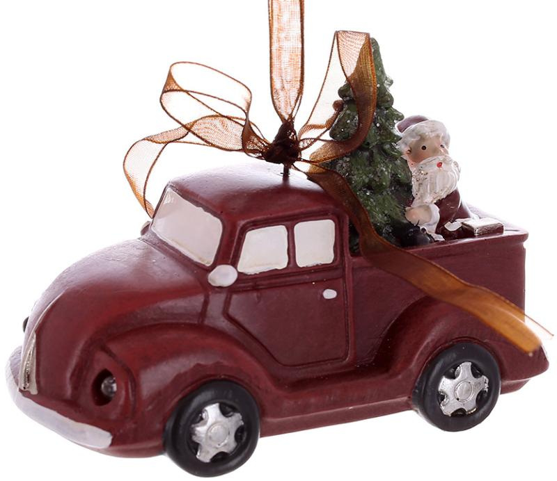 Набір новорічних декоративних підвісок Машинка з Ялинкою з LED-підсвічуванням фар машини.