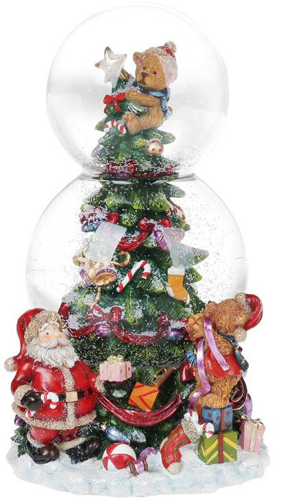Декоративний водяний шар Санта біля ялинки 15х13.5х20 см музичний BonaDi Різнокольоровий DP43041