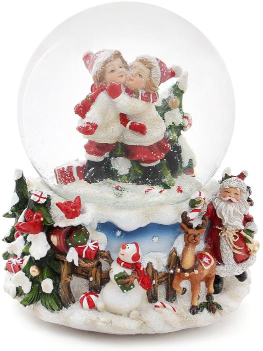 Декоративний водяний шар Санта біля ялинки 15х13.5х20 см музичний BonaDi Різнокольоровий DP43041