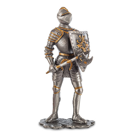 Оловяна фігура виконана просто майстерно, обладунки добре розмальовані, на щиті є герб. Статуетка воїна чудово виглядатиме на робочому столі сильного, впевненого в собі чоловіка, але в той же час вона відмінно впишеться і в домашній інтерєр, прикрасивши собою книжкову полицю.