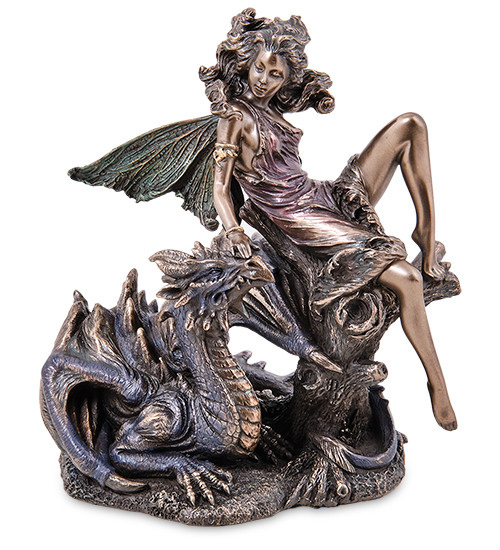 Статуетка Фея з Драконом 18х16х12 см полістоун покритий бронзою.