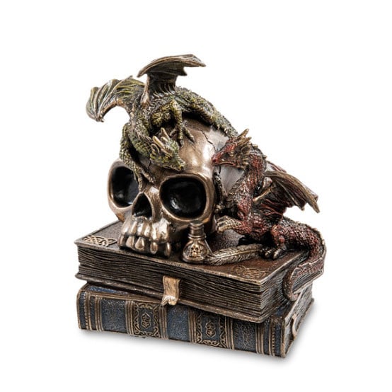 Статуетка Дракони на черепі символізує силу, мужність та захист, а також у багатьох культурах асоціюється з успіхом та процвітанням.