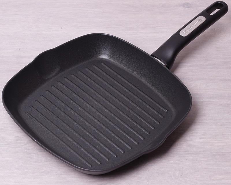 Кухонная сковородка для гриля с антипригарным покрытием из алюминия 28x28x4см без крышки KL225325 Kamille