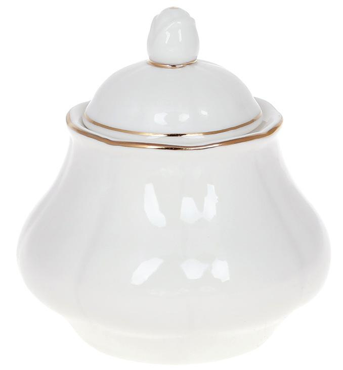 Сахарница. Объем 300 мл. Материал: фарфор. Авторский дизайн в сочетании с классической формой создадут утонченную атмосферу и будут уместны в любом интерьере. Белый фон с тонким золотым декором. Такая баночка украсит праздничный стол в любой компании. Упакована в фирменную коробку.