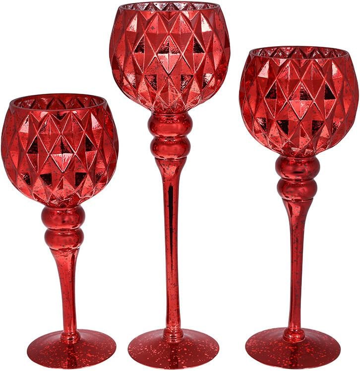 Подсвечники 3шт Katrein 30-35-40см красный бокал DP219504 BonaDi