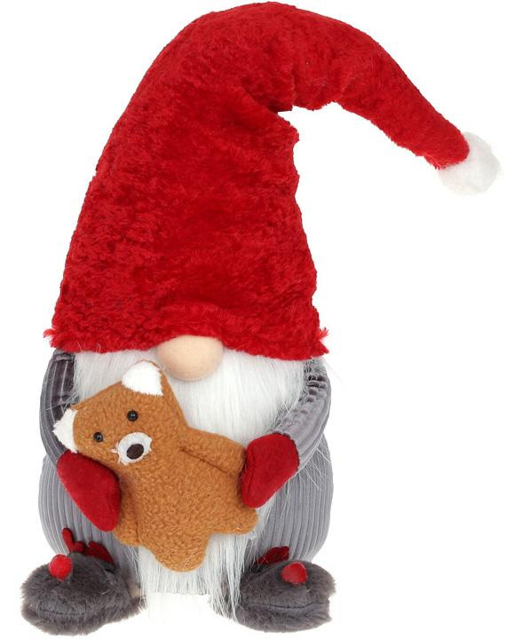 Декоративна іграшка Гномік з ведмедем 55 см червоний із сірим BonaDi DP219343
