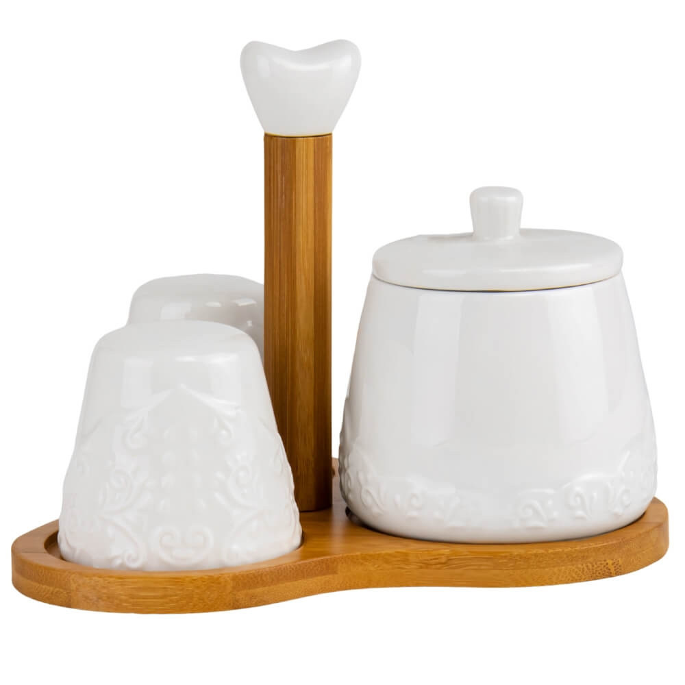 Набор для специй 4 предмета на бамбуковой подставке 9х9х10 см. Материал: керамика+бамбук.
