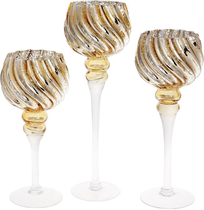 Набор 3 подсвечника. Материал - стекло. Цвет наружный - золотой. Размеры: 30х12см, 35х12см, 40х12см.
