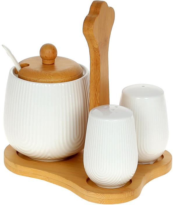 Набор емкости для специй сахарница солянка перечница на подносе Bona Purity 26х9.5х12.5 см Белый (DP186240)