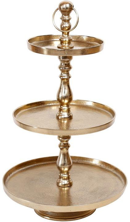 Блюдо фуршетна стійка 3-х ярусна, кругла, металева, колір золото антик.