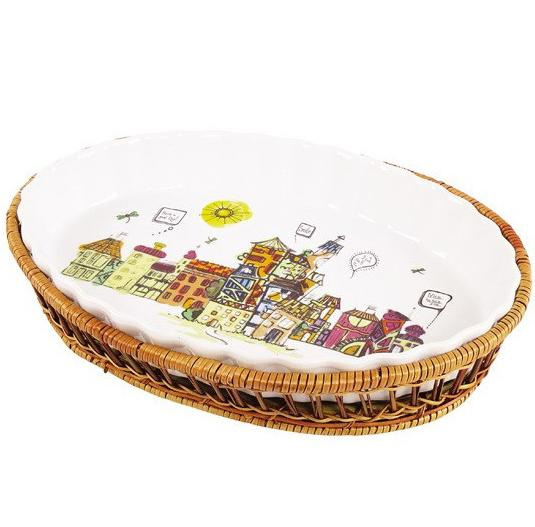 Форма Kamille для выпечки блюдо сервировочное City прямоугольное в плетенной корзине 2,4л DP62039