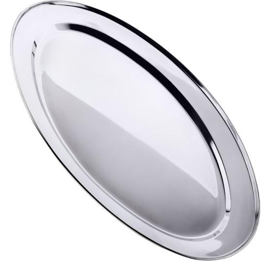 Профессиональный овальный поднос (разнос) из нержавеющей стали.